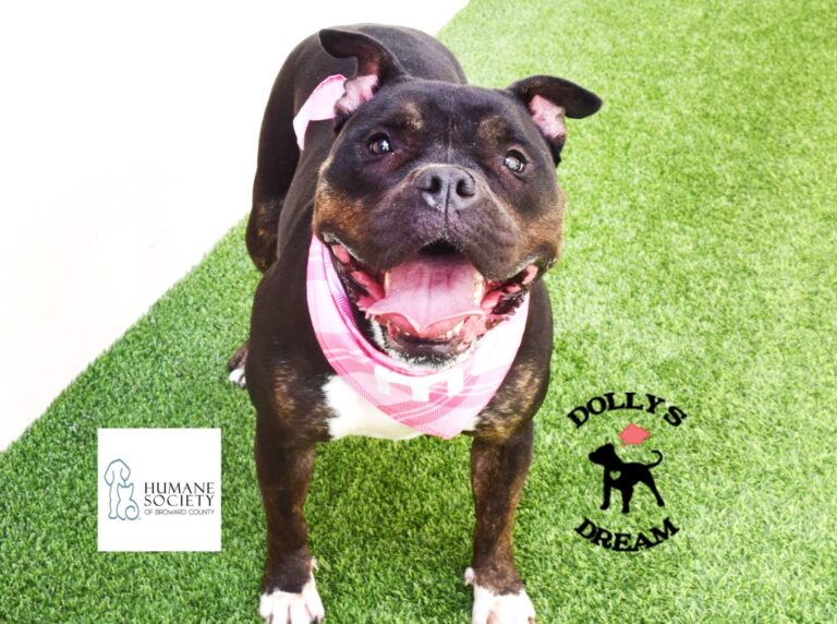 Dolly’s Dream has expanded and now they are underwriting the adoption fee of select bully breed dogs. In addition to underwriting the fee, they will cover the costs for the basic items that the dog will need to succeed in their new home. This includes a training crate, Sensation harness or No-Pull harness, chew toys, collar, ID tag, leash, training treat bag and basic dishes. If necessary, they will also cover the cost of obedience classes here at the Humane Society of Broward County.