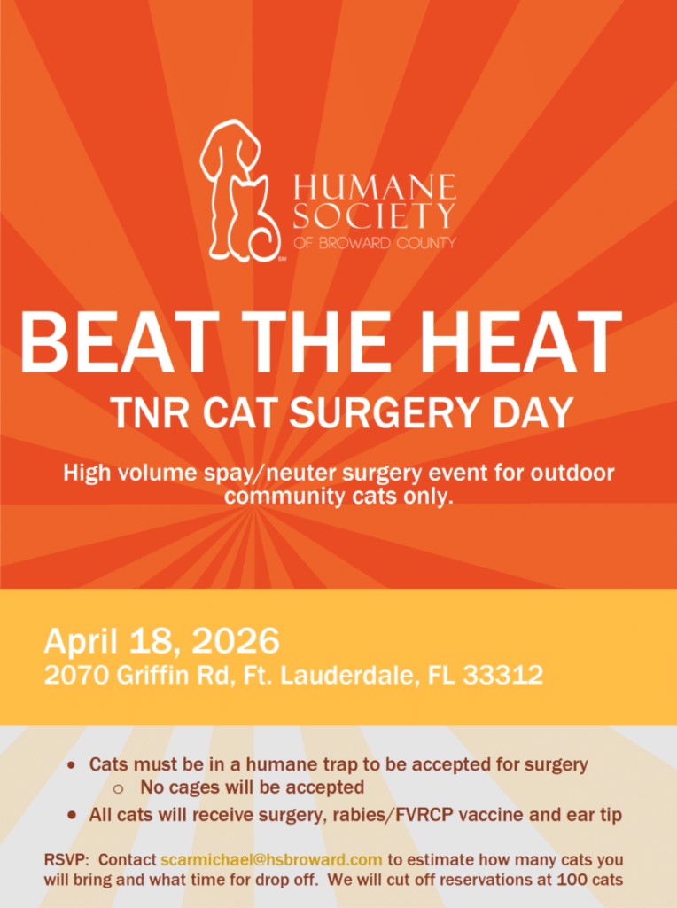 The Humane Society of Broward County continually emphasizes the importance of spaying and neutering to combat pet overpopulation. A significant portion of our resources is dedicated to these procedures for shelter animals.