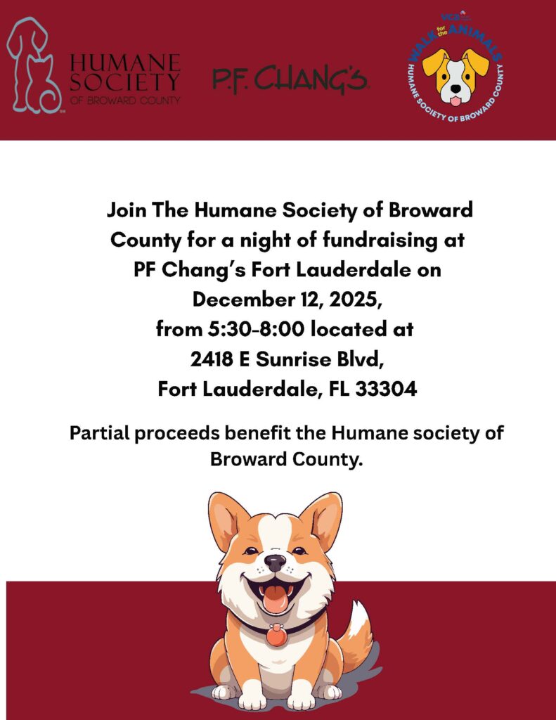 Join The Humane Society of Broward County for a night of fundraising at PF Chang’s Fort Lauderdale